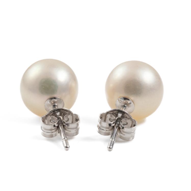 Pearl stud earrings with Akoya Pearl of 8.3mm. 14ct white gold. Weight: 2.1g. (Pre-owned)