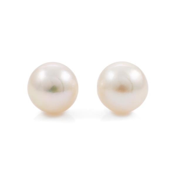 Pearl stud earrings with 2 off-round South Sea Pearls of 9.2mm - 9.3mm. 14ct white gold with silicon backs. Weight: 2.6g. (Pre-owned)