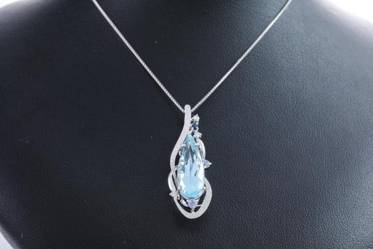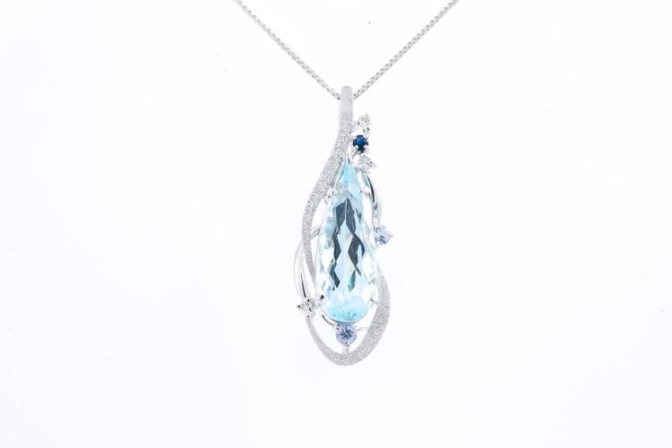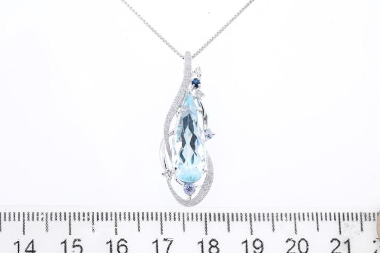Aquamarine, Sapphire & Diamond Pendant