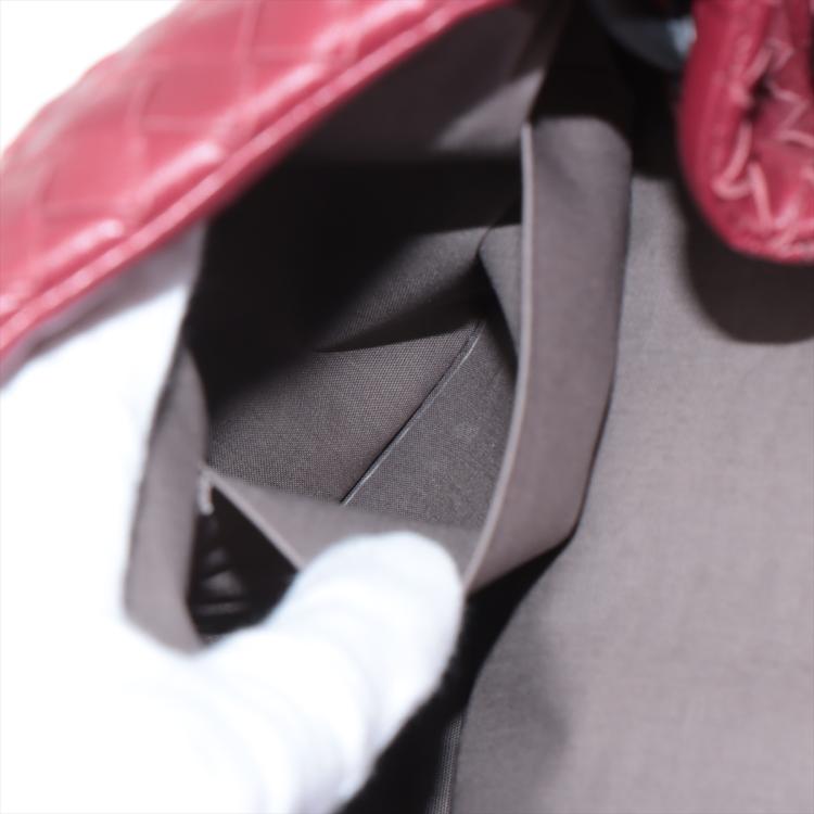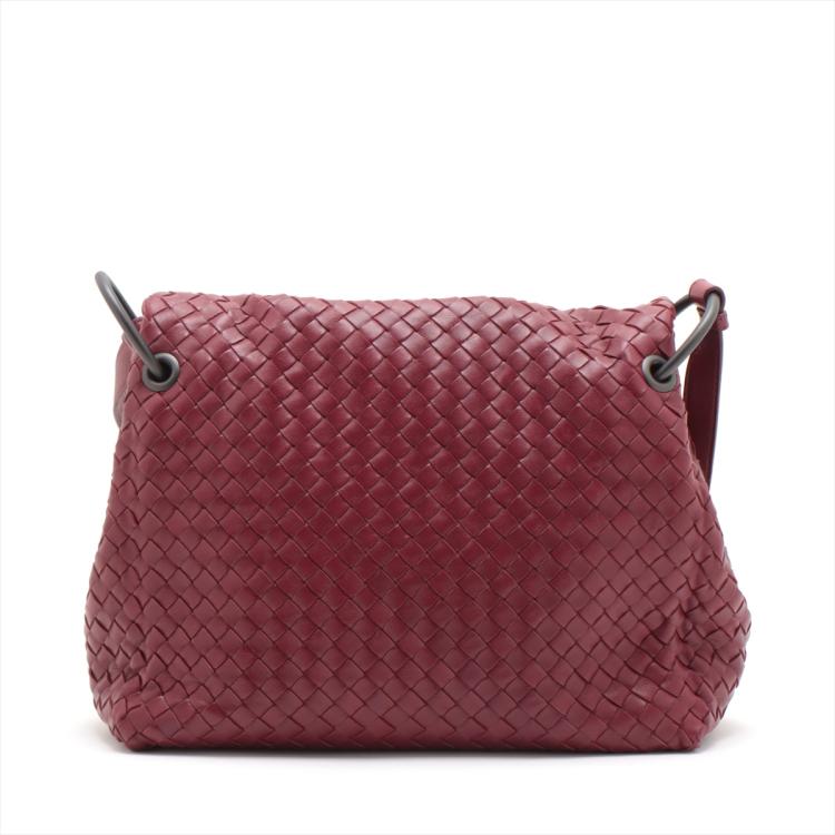 Bottega Veneta shoulder bag in Intrecciato leather in bordeaux colour. Featuring metal tone hardware, flip-over flap with magnetic closure at front. The flap opens to a grey fabric lining interior with zipped and patch pocket. Approximate dimensions: 28cm(L) x 23cm(H) x 11cm(D) and 61cm adjustable shoulder strap height. With Entrupy Certificate of Authenticity. (Pre-owned)