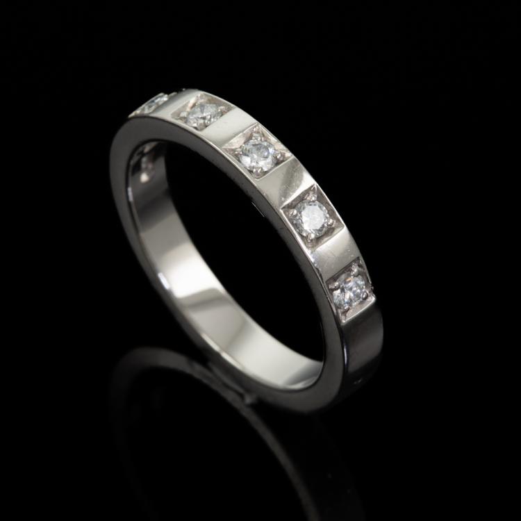 Bvlgari MarryMe Diamond ring with 5 round Natural Diamonds totalling 0.17ct. Platinum 950. Ring size I, - ring resizing is not recommended. Band width: 3mm. Made in Italy. Weight: 5.4g. (Pre-owned)