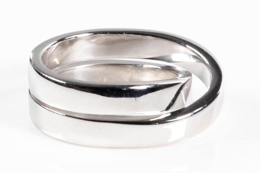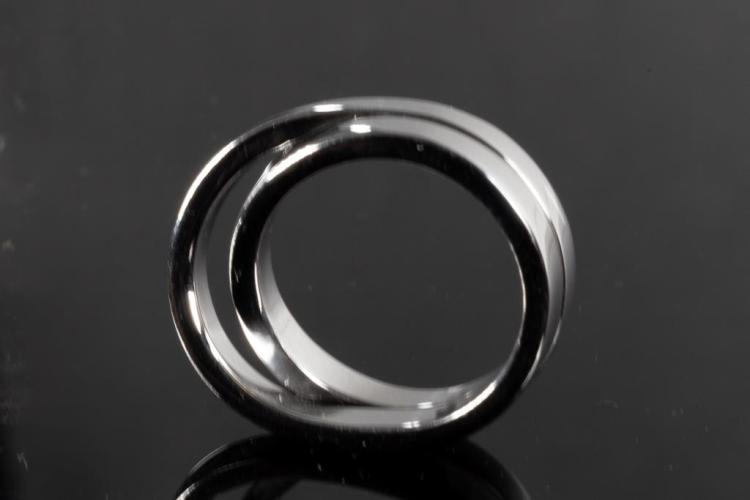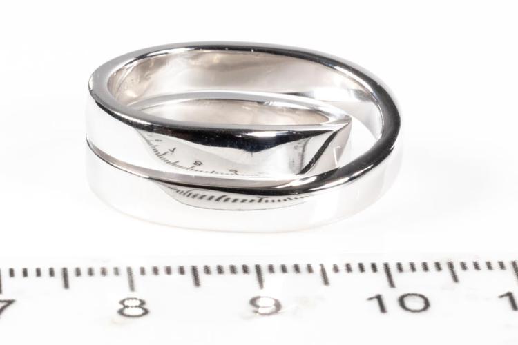 Cartier Paris Nouvelle Vague Crossover Ring. 18ct white gold ring. Cartier stamped size 54, N1/2 - ring resizing is not recommended. Circa 1999. Weight 15.9g. (Pre-owned)