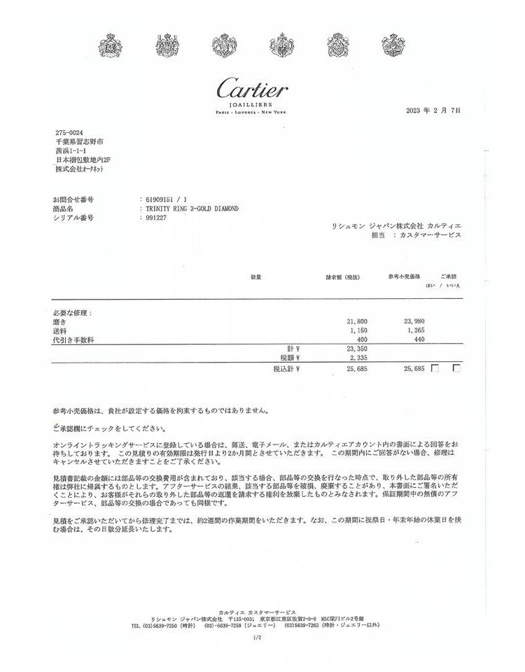 Cartier Diamond Trinity ring with round Natural Diamonds totalling approximately 1.00cts (Estimated grading: F VVS). 18ct yellow, white & rose gold. Cartier ring stamped size 50, K - ring resizing is not recommended. Weight: 8.9g. With copy of Cartier polishing invoice dated 7/2/2023. (Pre-owned)