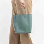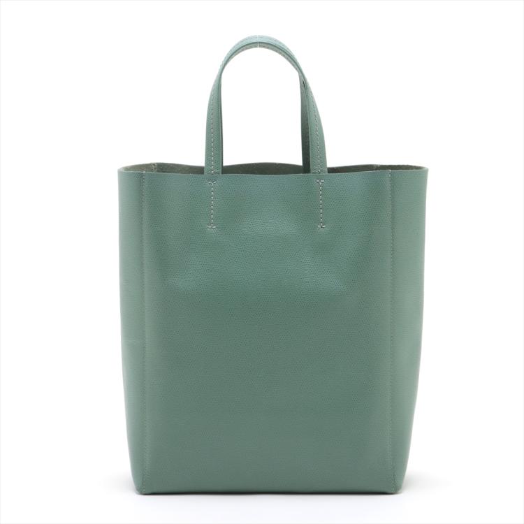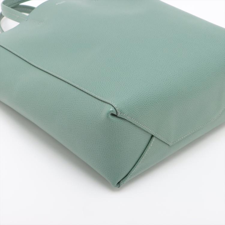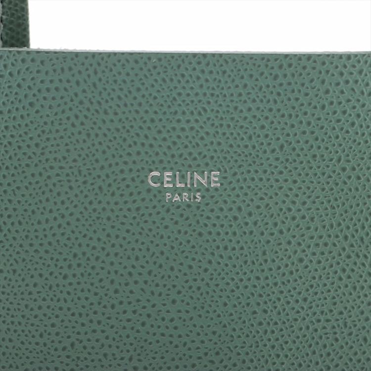 Celine small vertical Cabas tote in bluegreen grained leather. Featuring silver tone hardware, flat handles & single adjustable shoulder strap. The open top opens to a suede lining interior with a hanging zipper pocket. Approximate dimensions: 22cm(L) x 28cm(H) x 10cm(D), 11.5cm handle drop and 46cm shoulder strap drop. Accompanied by a Celine dust bag. With Entrupy Certificate of Authenticity. (Pre-owned)