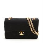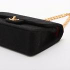 Chanel Double Flap bag in black diamond-quilted canvas. Featuring gold-toned hardware, exterior rear pocket, and a semi-full front flap with a Chanel CC turn-lock closure. This opens to reveal an inner flap and red textile interior with patched pockets. Approximate dimensions: 23cm(L) x 14cm(H) x 7cm(D), double Mademoiselle shoulder strap drop 24cm. Accompanied by Chanel authentication card, dustbag and box. With Entrupy Certificate of Authenticity. (Pre-owned)