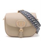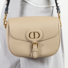 Christian Dior large Bobby in beige grainy calfskin. Featuring CD logo details on front flap and back pocket, gold tone hardware. The frontal flap with a snap button closure opens to a beige microfibre lining interior with a patch pocket. Approximate dimensions: 26cm(L) x 19.5cm(H) x 8.5cm(D) and 54cm CD monogram wide strap height. Accompanied by a Dior certificate card (dated 15/01/2022) and box. With Entrupy Certificate of Authenticity. (Pre-owned)