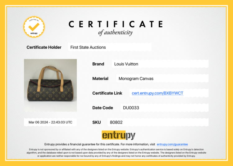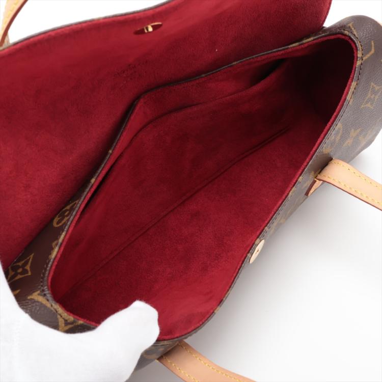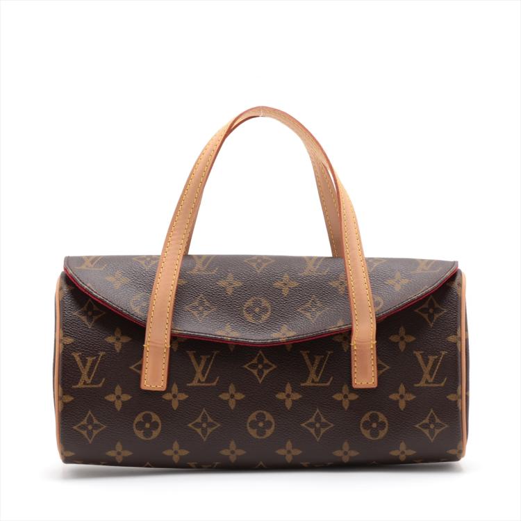 Louis Vuitton Sonatine in Monogram coated canvas. Featuring vachetta leather trims and top handles, an exterior pocket at back. The front-facing flap opens to a rouge red microfiber lining interior with a patch pocket. Approximate dimensions: 28cm(L) x 14cm(H) x 6.5cm(D), 10.5cm handle drop. Accompanied by LV dust bag and box. With Entrupy Certificate of Authenticity. (Pre-owned)