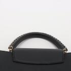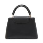 Louis Vuitton Capucines MM in black leather. Featuring gold & silver tone hardware, single top leather handle with braided detail and a matching wide strap, flap with a snap-hook closure. This opens to a black leather lining, compartmented interior with a zipped pocket. Approximate dimensions: 31cm(Base-L) x 19.5cm(H) x 10.5cm(D), 11cm handle drop and 55cm detachable and adjustable strap drop. With Entrupy Certificate of Authenticity. (Pre-owned)