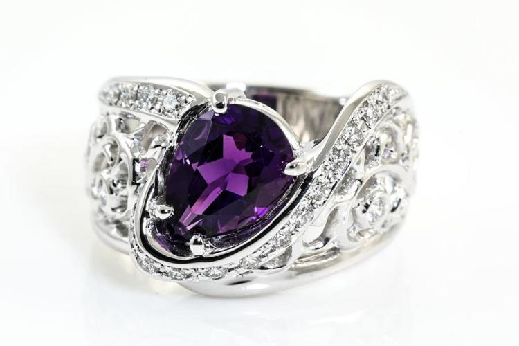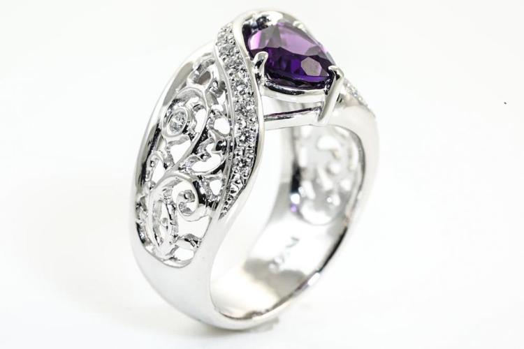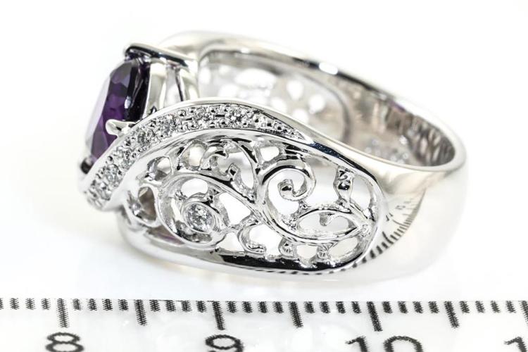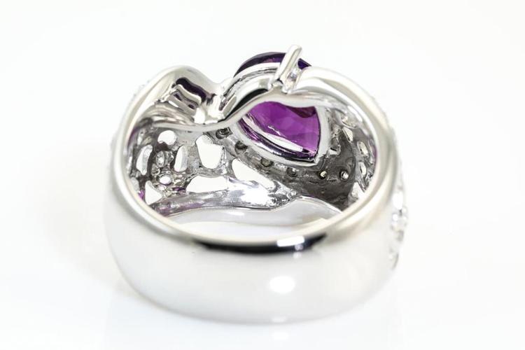Platinum Amethyst and Diamond Ring