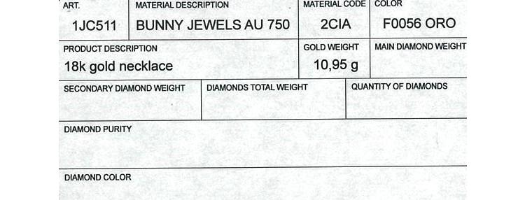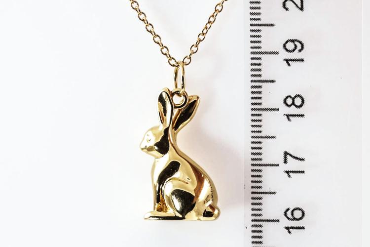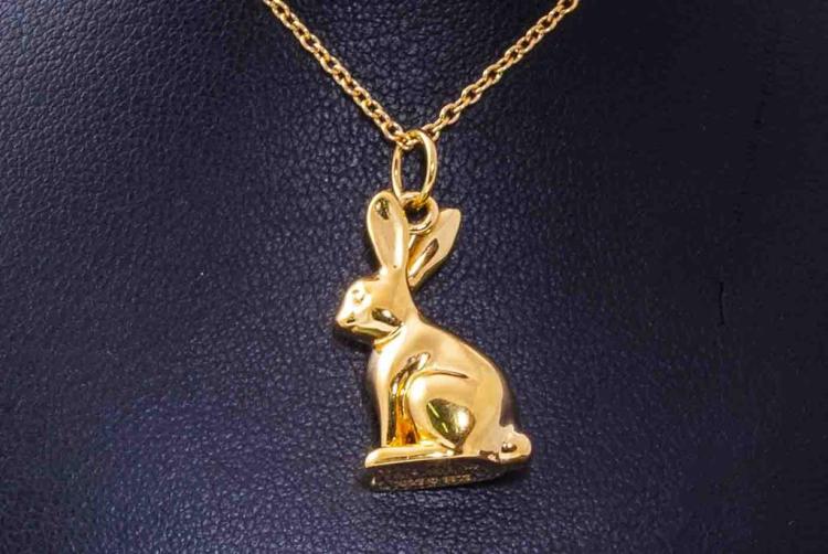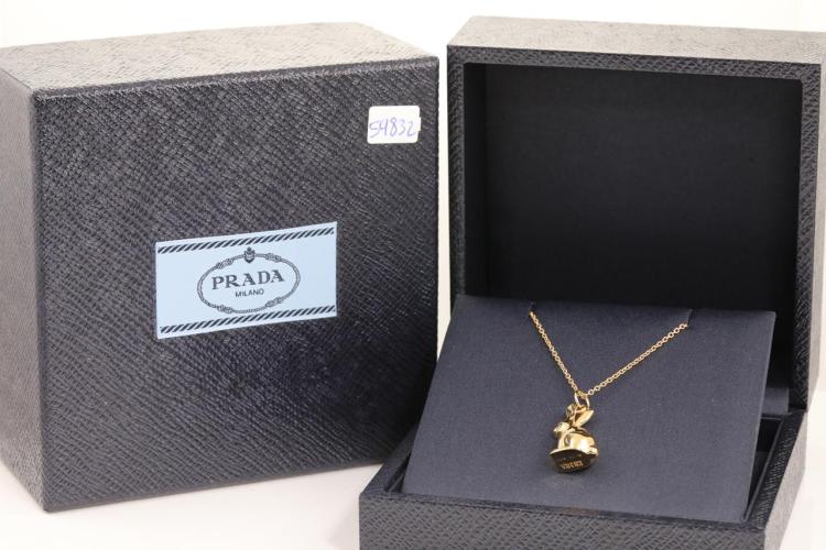 Prada rabbit-shaped necklace. Made in Italy. 18ct yellow gold. Adjustable 18ct gold Prada chain - max length 68cm. Weight: 10.9g. With Prada box. With Prada authenticity card. (Pre-owned)