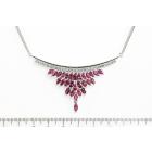 Ruby and Diamond necklace with marquise cut Natural Rubies totalling 5.74cts and round Natural Diamonds totalling 0.58cts (Estimated grading: G SI). Platinum - 900. Length: 44cm. Weight: 21.7g. (Pre-owned)