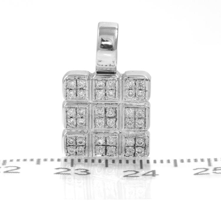 Diamond square design pendant with round Natural Diamonds totalling 0.32cts (Estimated grading: G-H SI). 18ct white gold. No chain provided. Size: 13mm x 20mm. Weight: 6.0g. (As new)