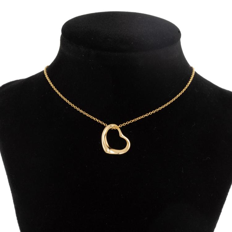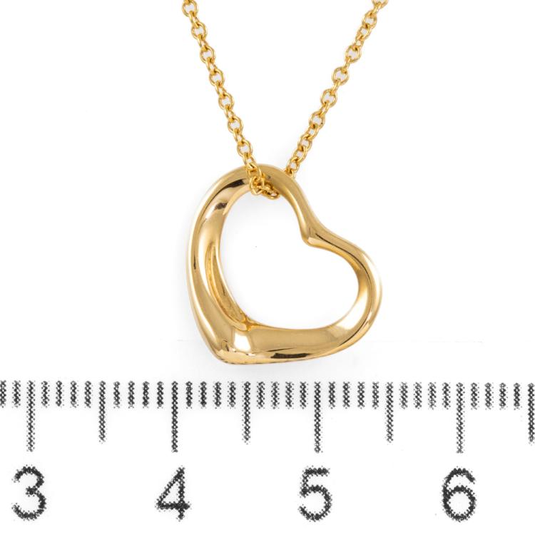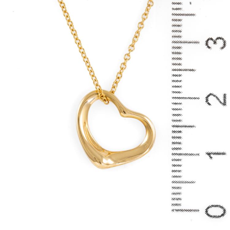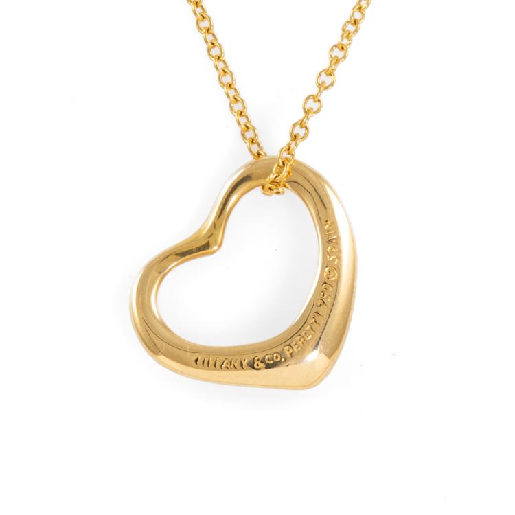Tiffany & Co. Elsa Peretti Open Heart pendant. Motif size: 12.6mm x 15mm. 18ct yellow gold with 41.5cm chain. Weight: 2.9g. (Pre-owned)