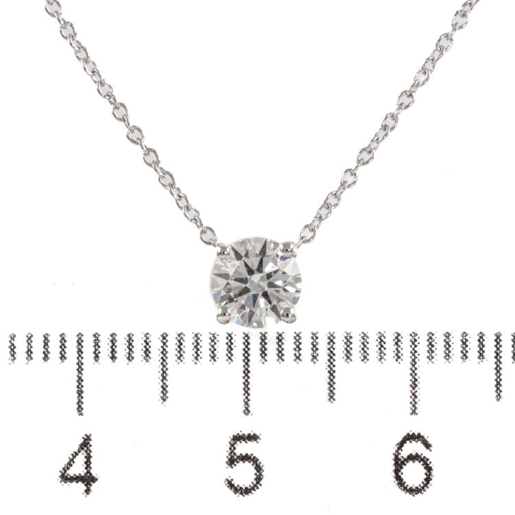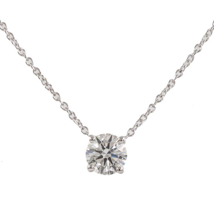 Diamond solitaire pendant with round brilliant cut Natural Diamond of 0.56ct (with GIA Summary Report graded as E Internally Flawless #1483030998). 18ct white gold with 18ct white gold attached chain. Length: 41cm. Weight 1.5g (New)