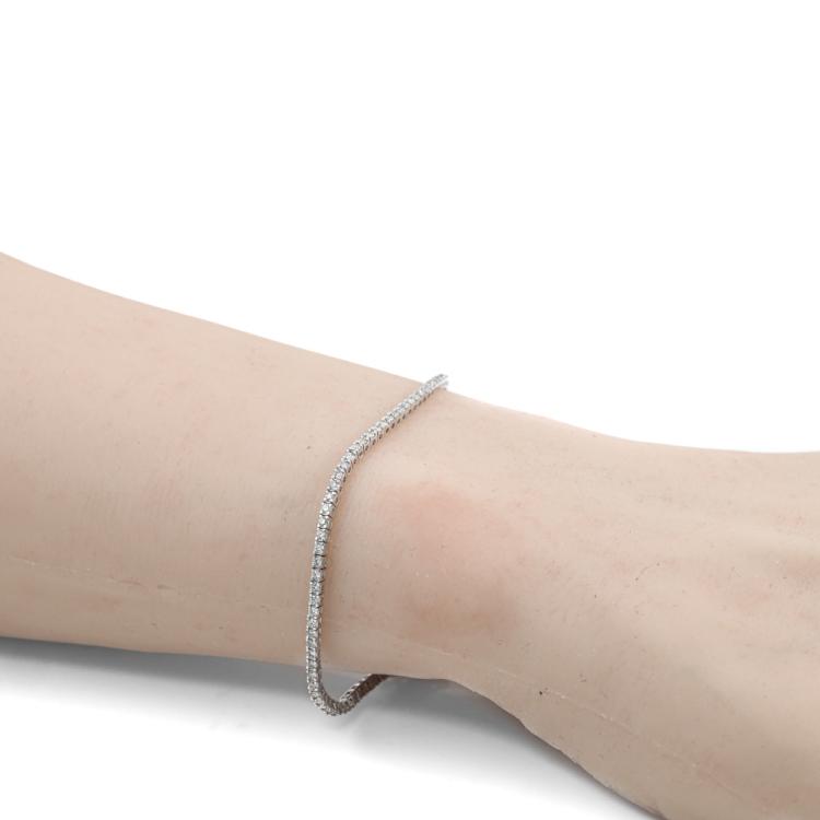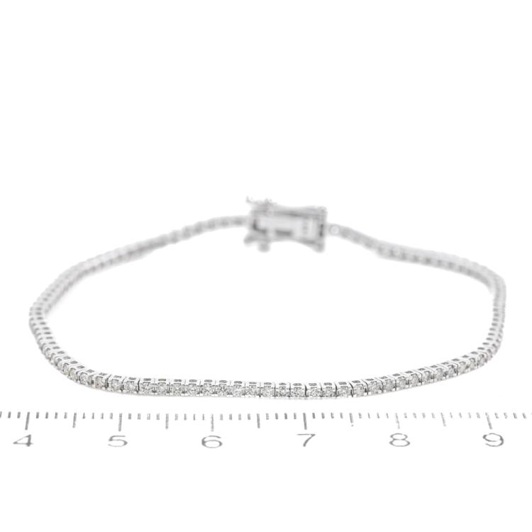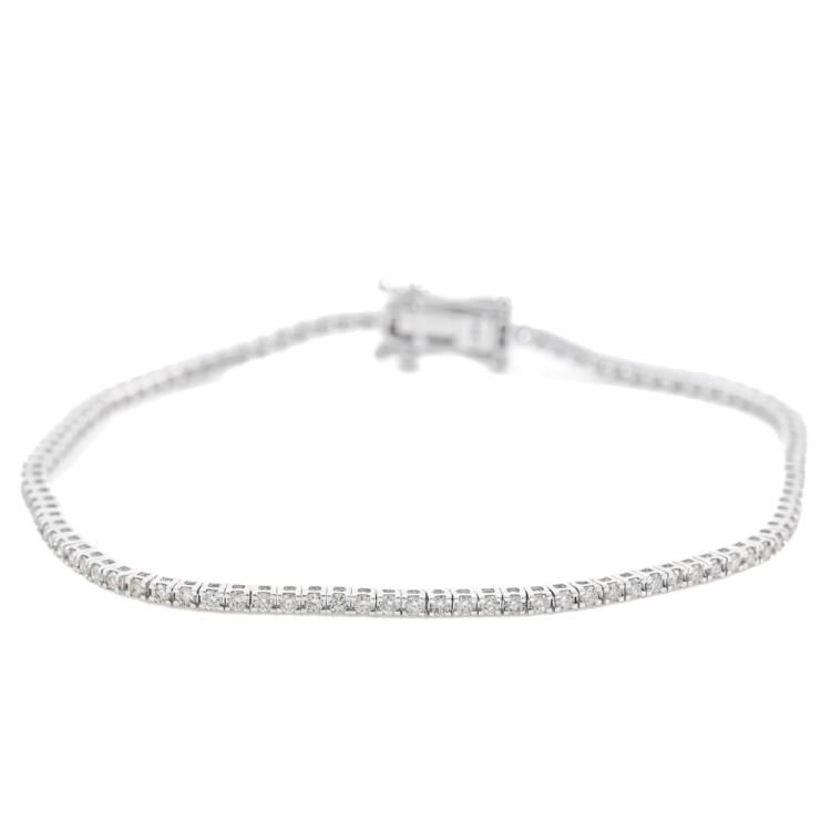 Diamond tennis bracelet with 102 round Natural Diamonds totalling 1.03ct (Estimated grading: J-K SI). 14ct white gold. Length: 17.5cm. Weight: 4.5g. (New)
