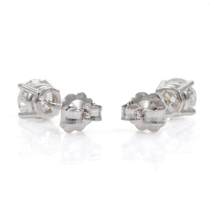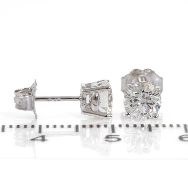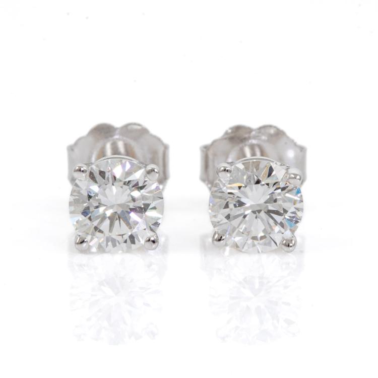 Diamond studs with 2 round brilliant cut Natural Diamonds totalling 1.12cts (with GIA Reports graded as G Internally Flawless, #3475755073, 7466533339). 18ct white gold. Weight: 1.1g (New)