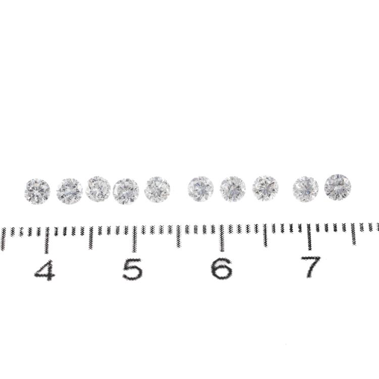 A loose parcel of 10 round Natural Diamonds totalling 1.17ct (Estimated grading H-I P1). Size: approx. 3.06mm-3.10mm. (As New)