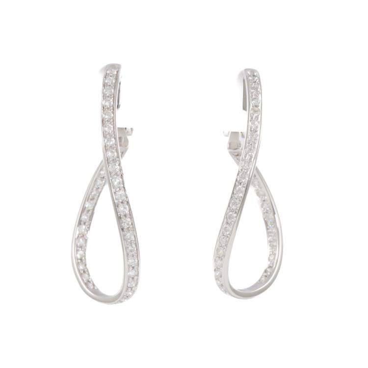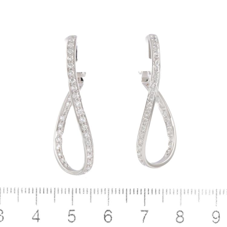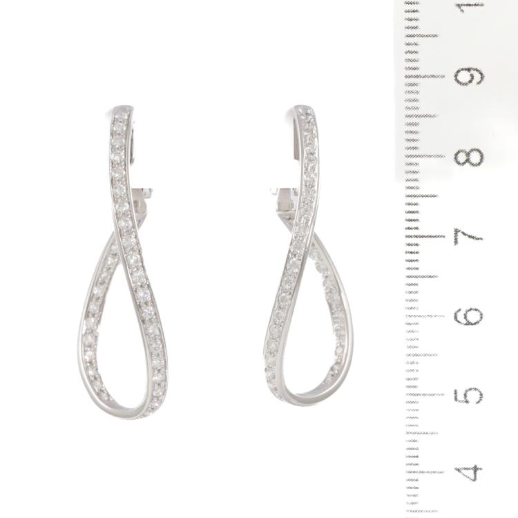 Diamond inside out clip-on earrings (for non-pierced ears) with round Natural Diamonds totalling 1.30ct (Estimated grading: G SI). 18ct white gold. Length: 41mm. Weight: 10.4g. (Pre-owned)