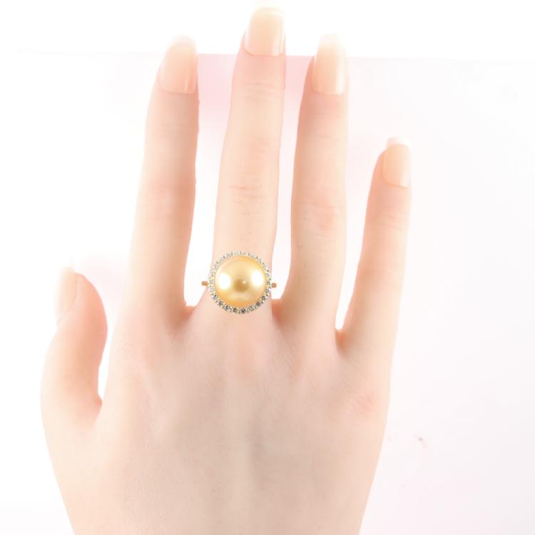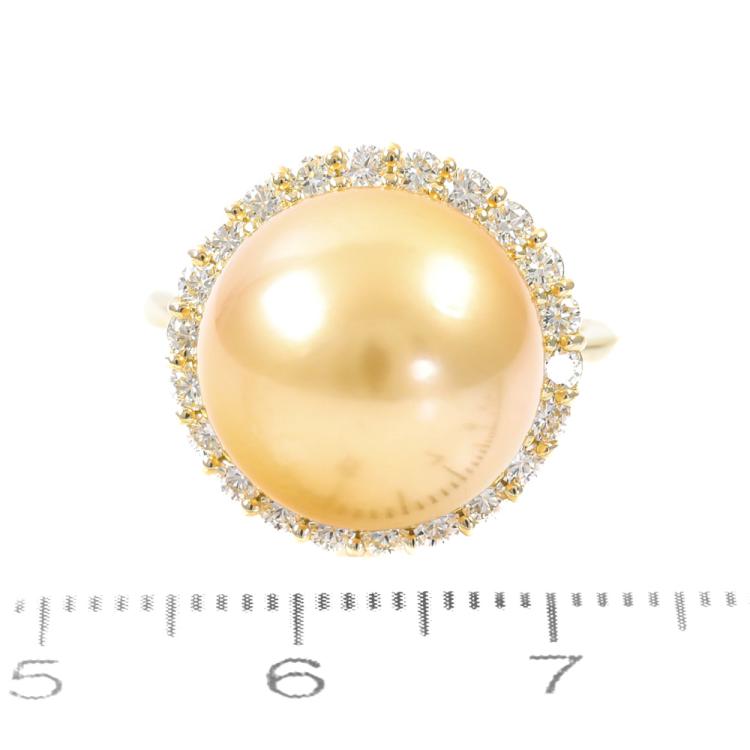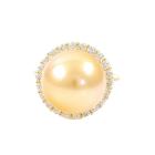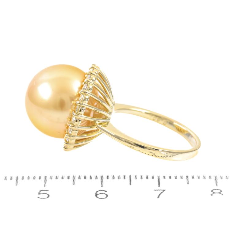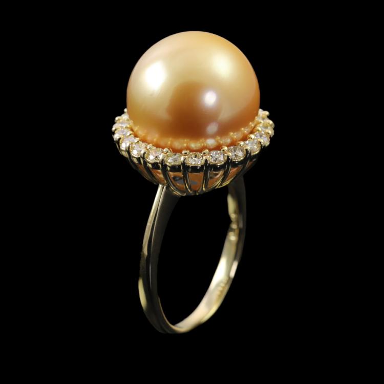 Pearl and Diamond ring with Golden South Sea Pearl of 13.6mm and round Natural Diamonds totalling 0.60ct (Estimated grading: M-N SI). Ring size: L. Band width: 2.0mm - 1.2mm. Weight: 9.0g. (Pre-owned)