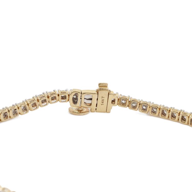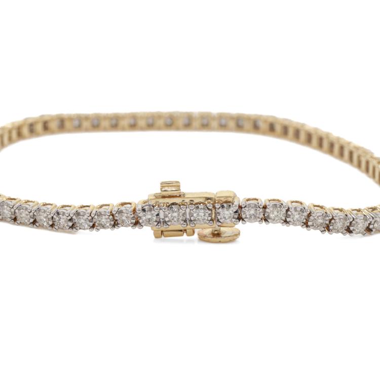 Diamond tennis bracelet with 66 round Natural Diamonds totalling 1.53ct (Estimated grading: I-J SI). 14ct yellow & white gold. Length: 18.5cm. Weight: 9.2g. (New)