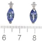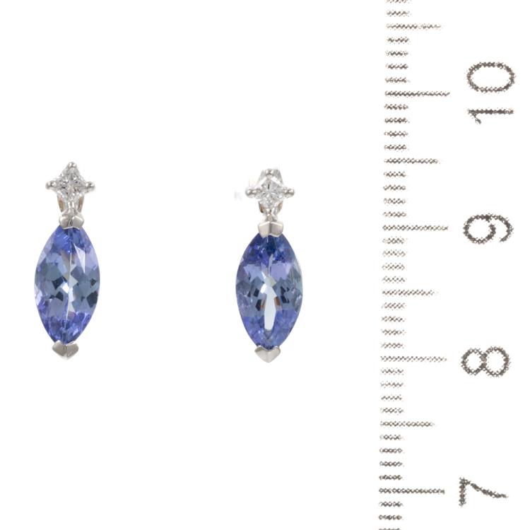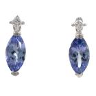 Tanzanite and Diamond earrings with marquise cut natural Tanzanite's totalling 1.60ct and princess cut natural Diamonds totalling 0.10ct. Platinum 900 with silicon backs. Weight: 2.4g. (Pre-owned)
