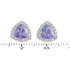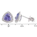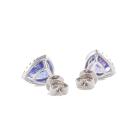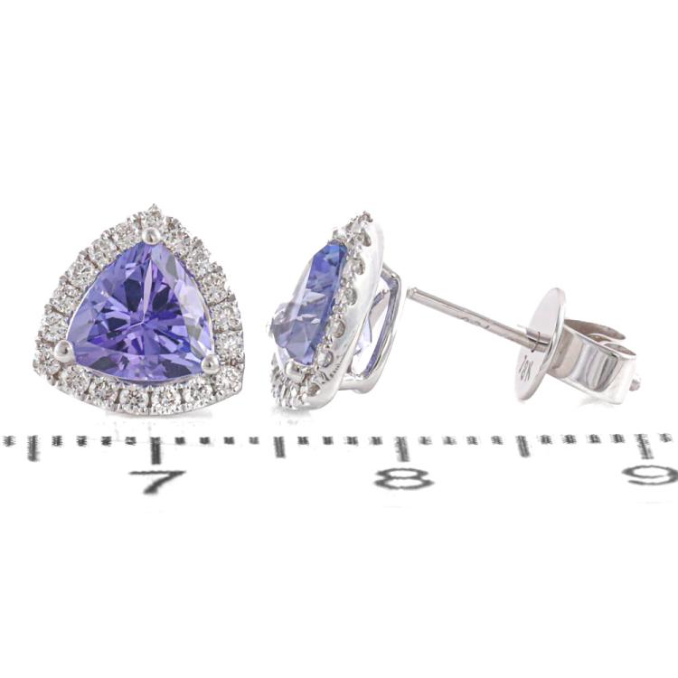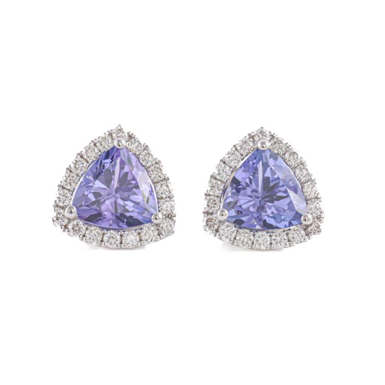 Tanzanite and Diamond earrings with Trilliant cut natural Tanzanite totalling 1.66cts and round Natural Diamonds totalling 0.27cts. 18ct white gold. Weight: 2.0g. (New)