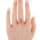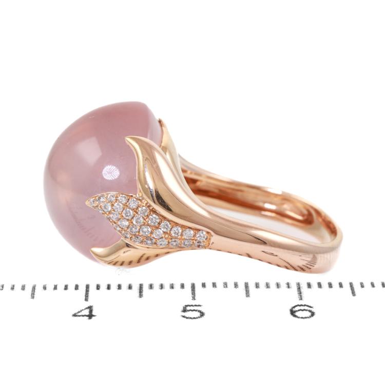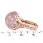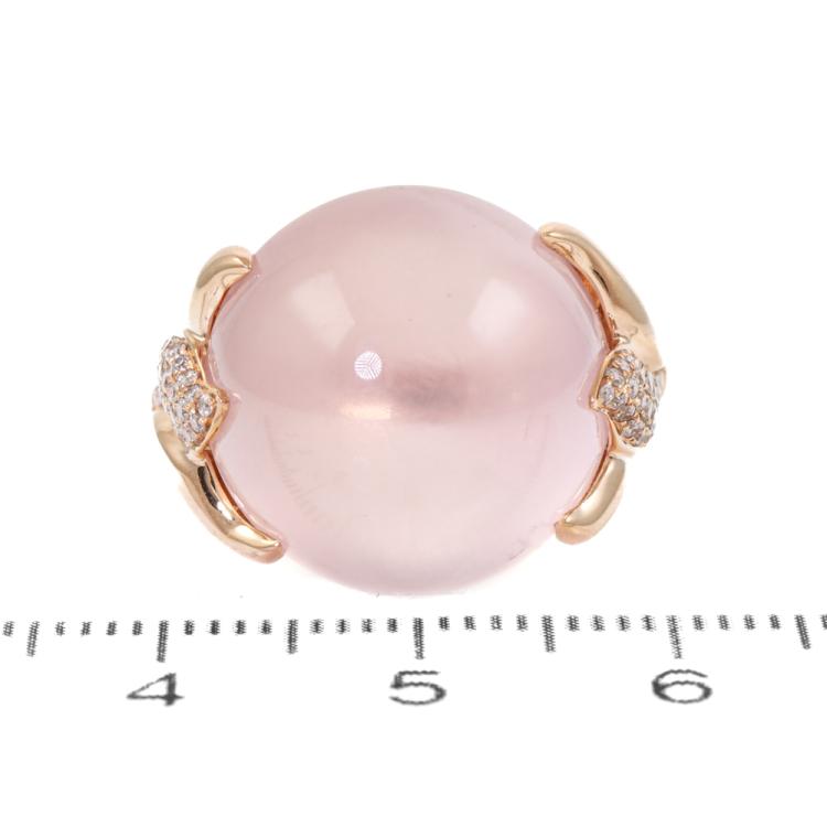 Rose Quartz and Diamond ring with round cabochon cut Natural Star Rose Quartz for approximately 20.00ct and round Natural Diamonds totalling approximately 0.28ct. 18ct rose gold. Ring size N. Band width: 3.8mm x 2.8mm. Weight: 9.0g. (Pre-owned)