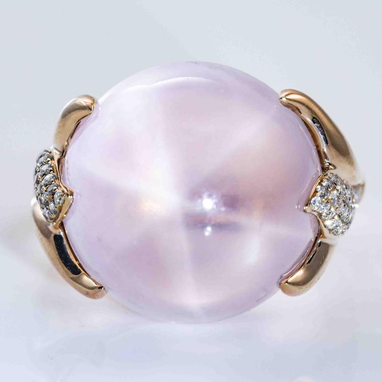 20.00ct Star Rose Quartz and Diamond Ring