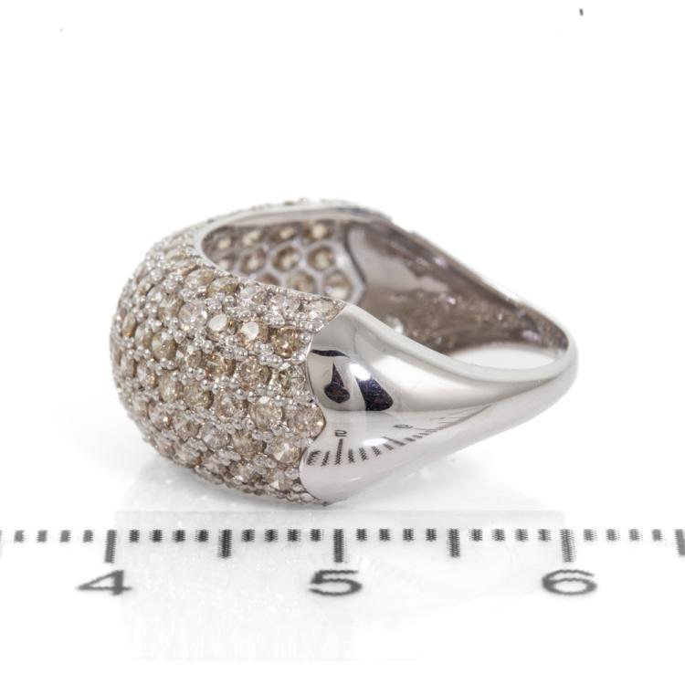 Diamond Dress ring with round natural Diamonds totalling 2.00cts (Estimated grading: Light Champagne SI-P1). 18ct white gold. Ring size L 1/2. Band width:1.8mm - 7.2mm. Weight: 4.2g. (Pre-owned)