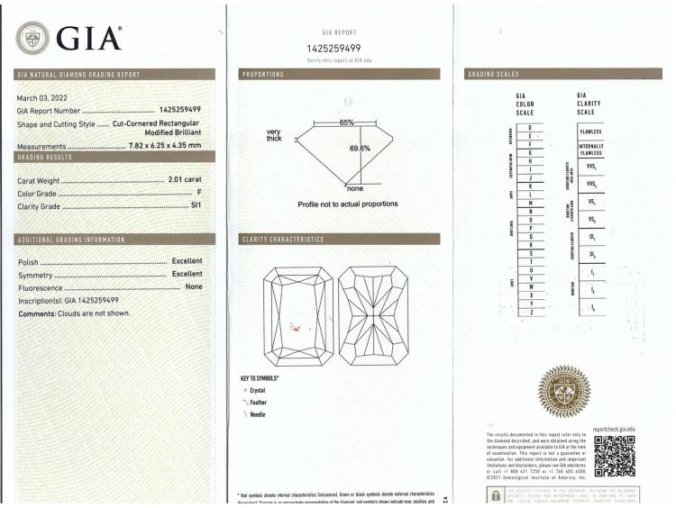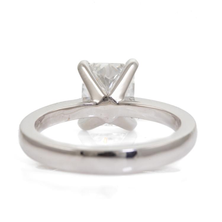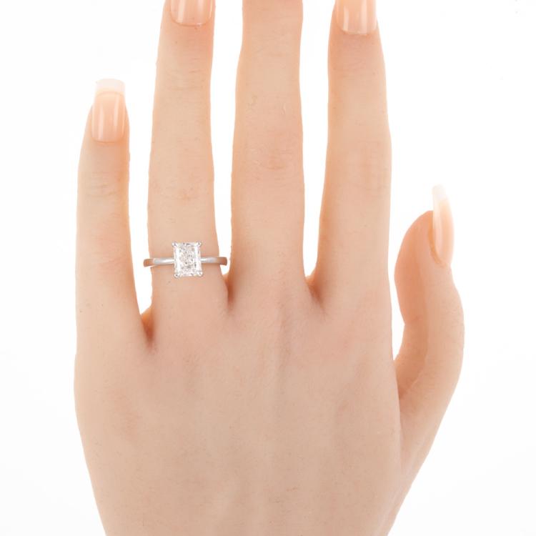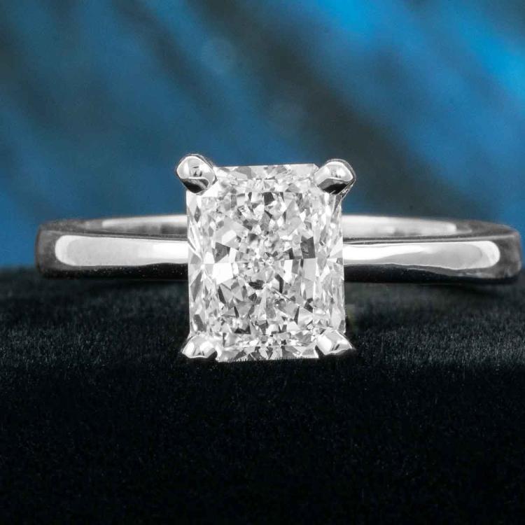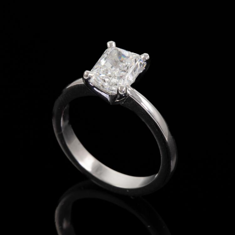 Diamond solitaire ring with radiant cut Natural Diamond of 2.01ct (with GIA Report graded as F SI1 #1425259499). 18ct white gold. Ring size: K1/2. Band width: 2.9mm - 1.9mm. Weight: 5.7g. (New)