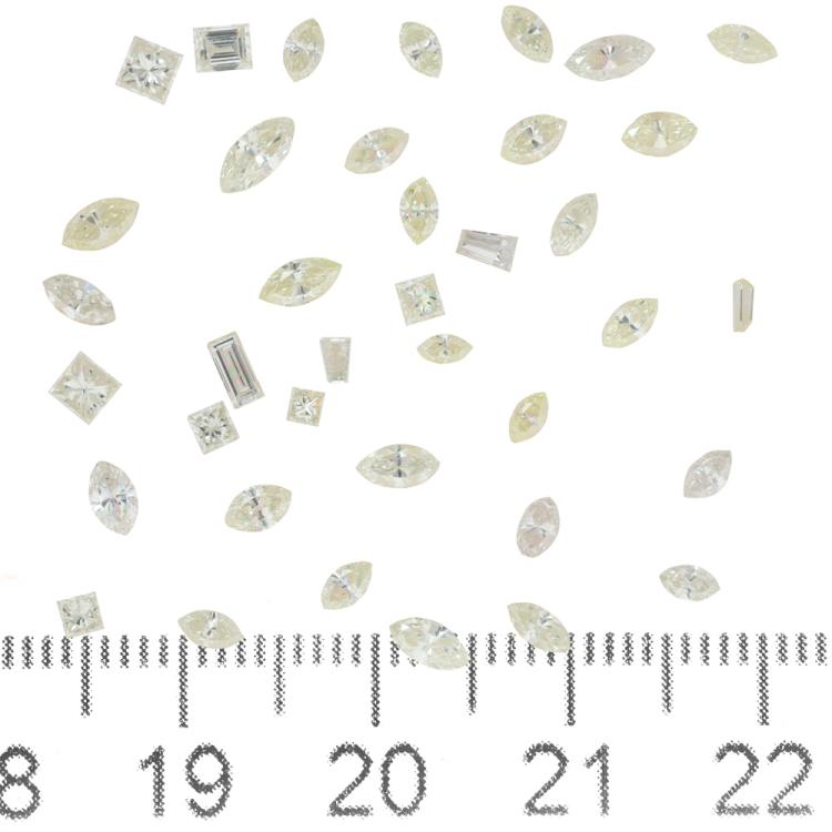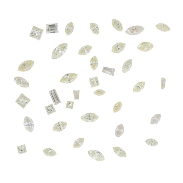 A loose parcel of mixed shape Natural Diamonds totalling 3.02ct (Estimated grading: Light Light Yellow - Fancy Yellow VS-SI). Diamond shape including marquise cut, baguette cut and princess cut. (As New)