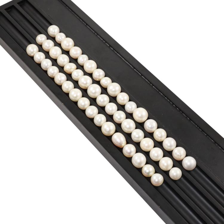 Parcel of 50 mixed, loose, undrilled, round, near round, button and drop South Sea Pearls approximately from 11.0mm - 14.1mm. Weight: 140.1g. (As New)
