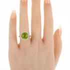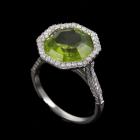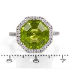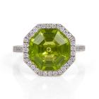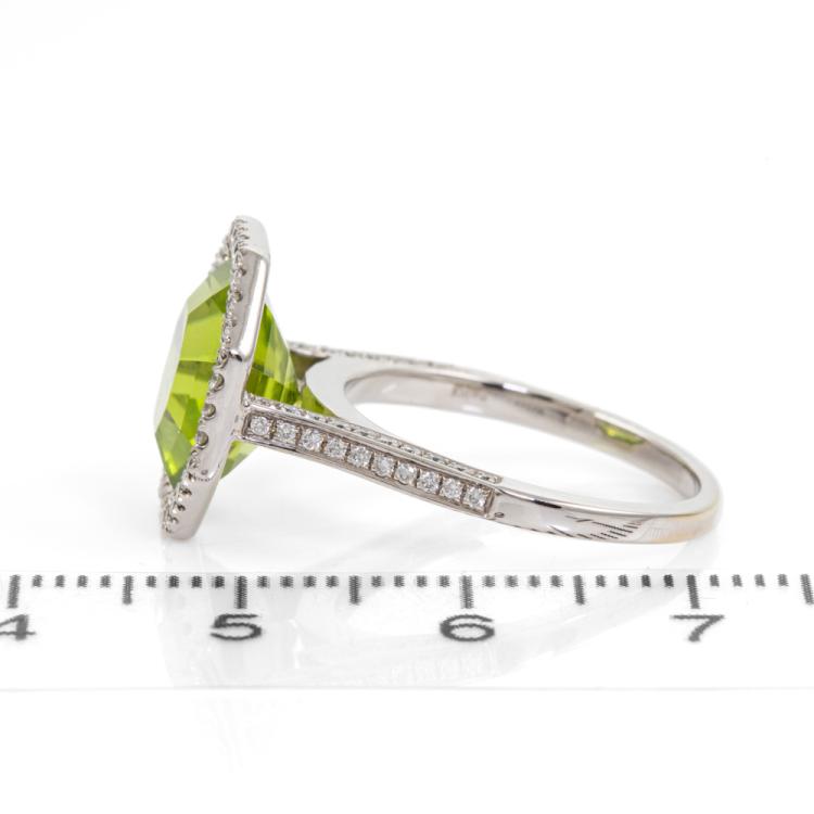 Peridot and Diamond ring with fancy octagonal cut natural Peridot of 5.04ct and round natural Diamonds totalling 0.45cts (Estimated grading: H SI). 18ct white gold. Ring size L1/2 - ring resizing is not recommended. Band width: 1.6mm - 2.0mm. Weight: 4.9g. (Pre-owned)