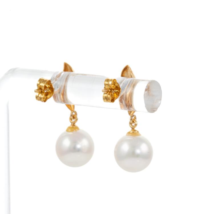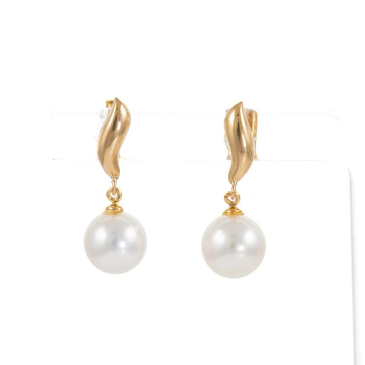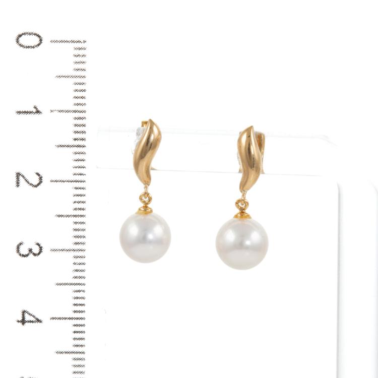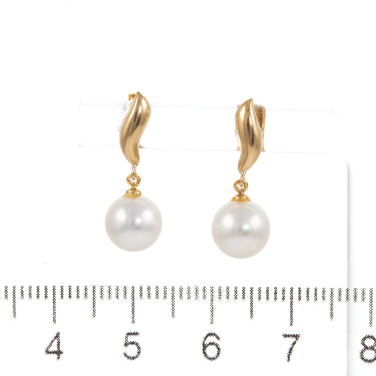 Pearl earrings with Akoya Pearl of 7.3mm - 7.4mm . 18ct yellow gold. Weight: 1.7g. (Pre-owned)