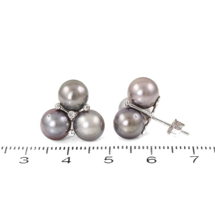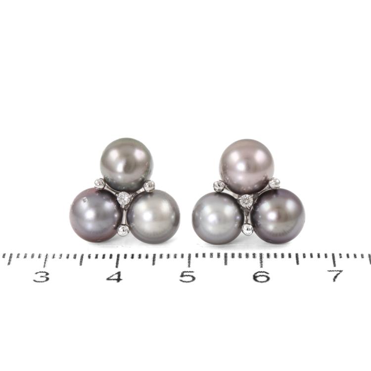 Pearl and Diamond earrings with 6 Tahitian pearls of 7.5mm-7.7mm and round Natural Diamonds totalling 0.06ct. 14ct white gold with 14ct white gold backs. Weight: 5.7g. (Pre-owned)