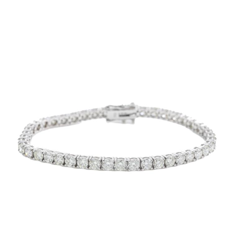 Diamond tennis bracelet with 45 round Natural Diamonds totalling 9.29ct (Estimated grading: HIJ SI). 18ct white gold. Length: 18cm. Weight: 13.8g. With Valuation Certificate #419476. (New)