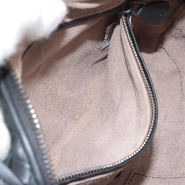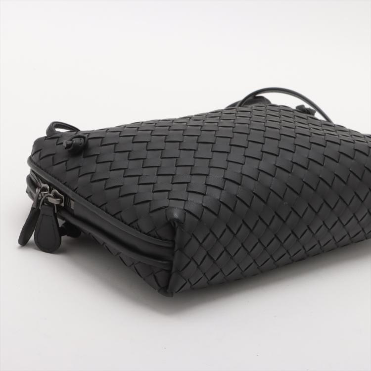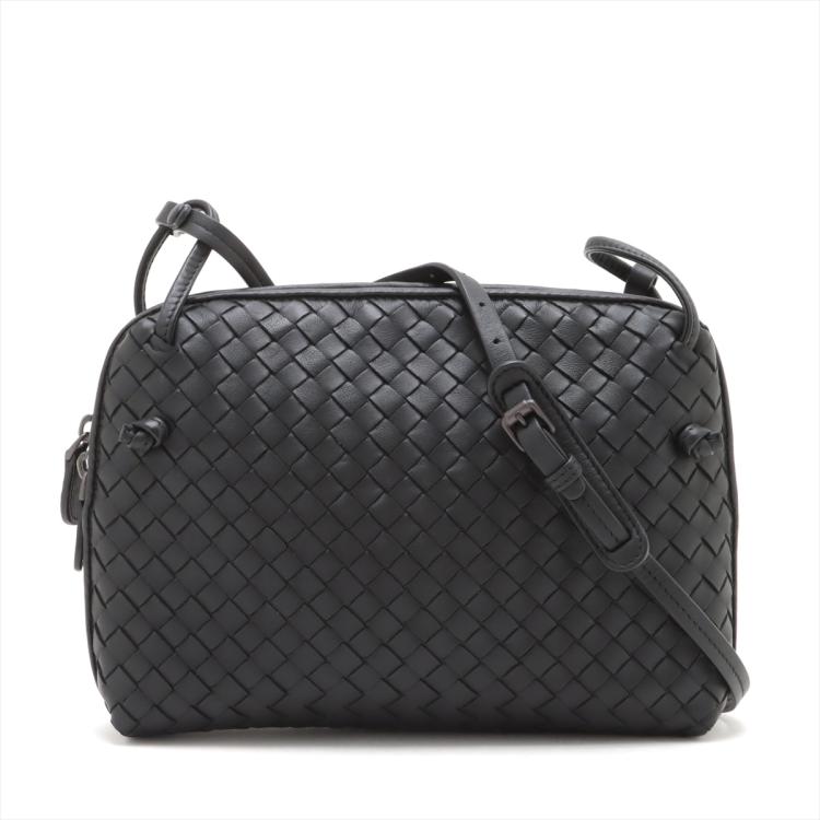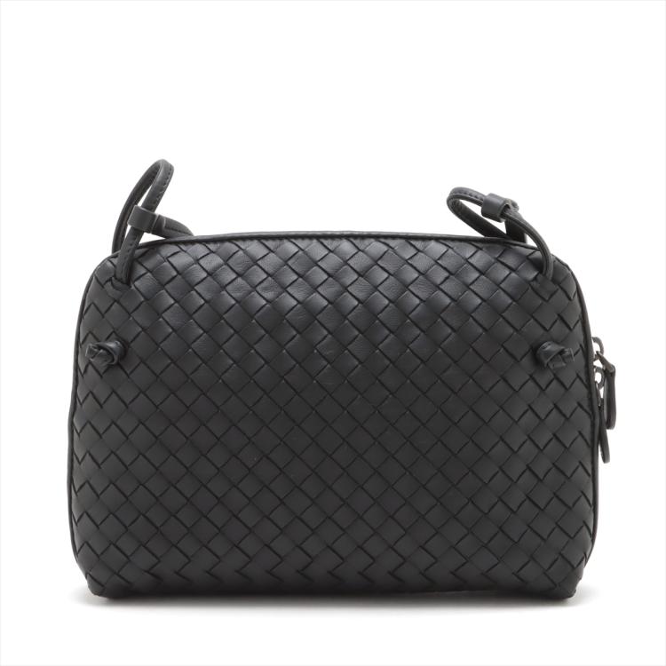 Bottega Veneta Nodini crossbody bag in black, intrecciato Nappa leather. Featuring metal-tone hardware, knot detailing. The top zip opens to an grey microfiber lining interior with zippered and patched pockets. Approximate dimensions: 23cm(W) x 17.5cm(H) x 4.5cm(D), 61.5cm handle drop, adjustable. Accompanied by a BV dust bag. With Entrupy Certificate of Authenticity. (Pre-owned)