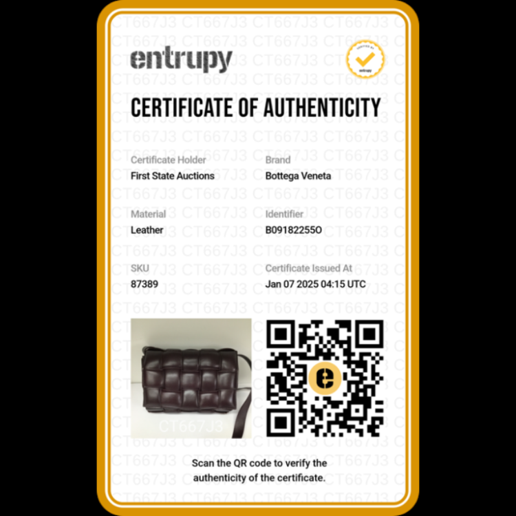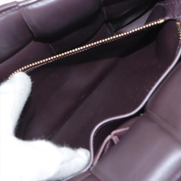 Bottega Veneta padded Cassette crossbody bag in Bordeaux Nappa Leather. Featuring Maxi Intrecciato design, gold-tone hardware, fold over flap with a push-up closure. It opens to a leather interior with a hanging zipper pocket. Approximate dimensions: 25cm (L) x 18cm (H) x 6.5cm (D), and 50-56cm adjustable shoulder strap drop. Accompanied by BV dustbag. With Entrupy Certificate of Authenticity. (Pre-owned)