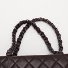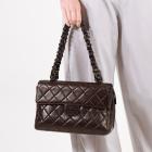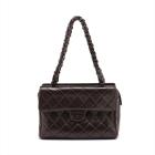 Chanel vintage camera flap bag in brown diamond-quilted lambskin leather (#6xxxxxx). Featuring brown marble hardware, leather-chain shoulder straps, and frontal pocket with flap and CC turn-lock closure. The zipper top opens to a matching brown leather interior with zipper and patch pockets. Approximate dimensions: 27.5cm(L) x 19cm(W) x 9cm(D), strap drop 22.5cm. Accompanied by Chanel dustbag and authentication card. With Entrupy Certificate of Authenticity. (Pre-owned)