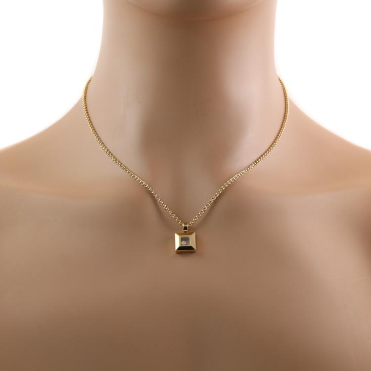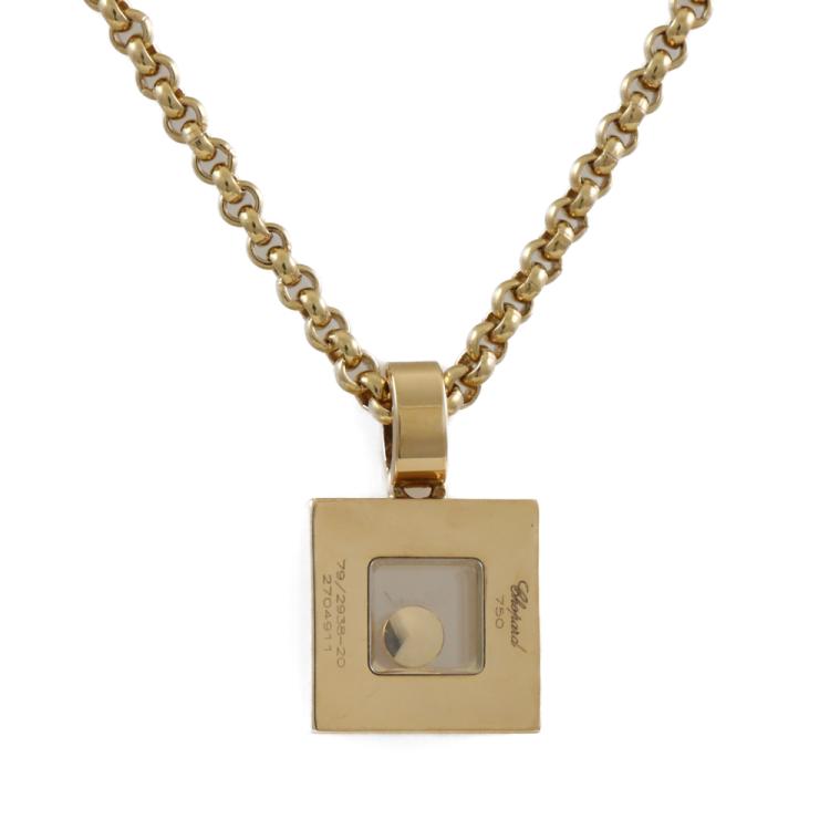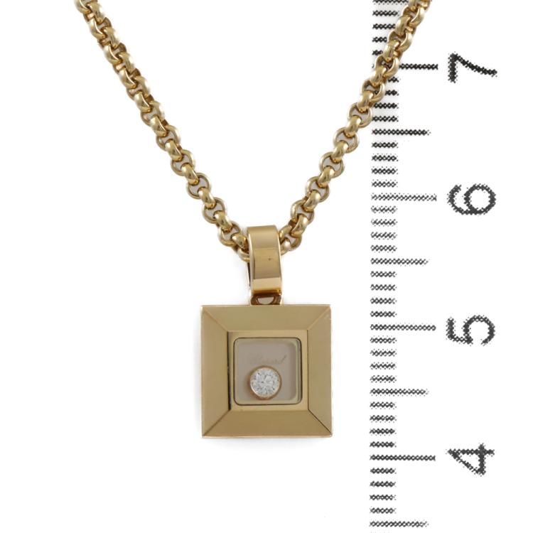 Chopard Happy Diamonds Icons pendant with one floating round natural Diamond of approximately 0.04ct. Motif size: 10.1mm x 10.1mm. 18ct yellow gold with 42.5cm 18ct yellow gold Chopard chain. Weight: 13.3g. (Pre-owned)