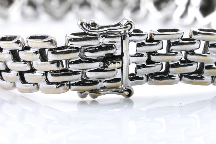 Diamond bracelet with round Diamonds totalling approximately 0.54ct (Estimated grading: H SI). 18ct white gold. Length: 18cm. Weight: 17.5g. (Pre-owned)