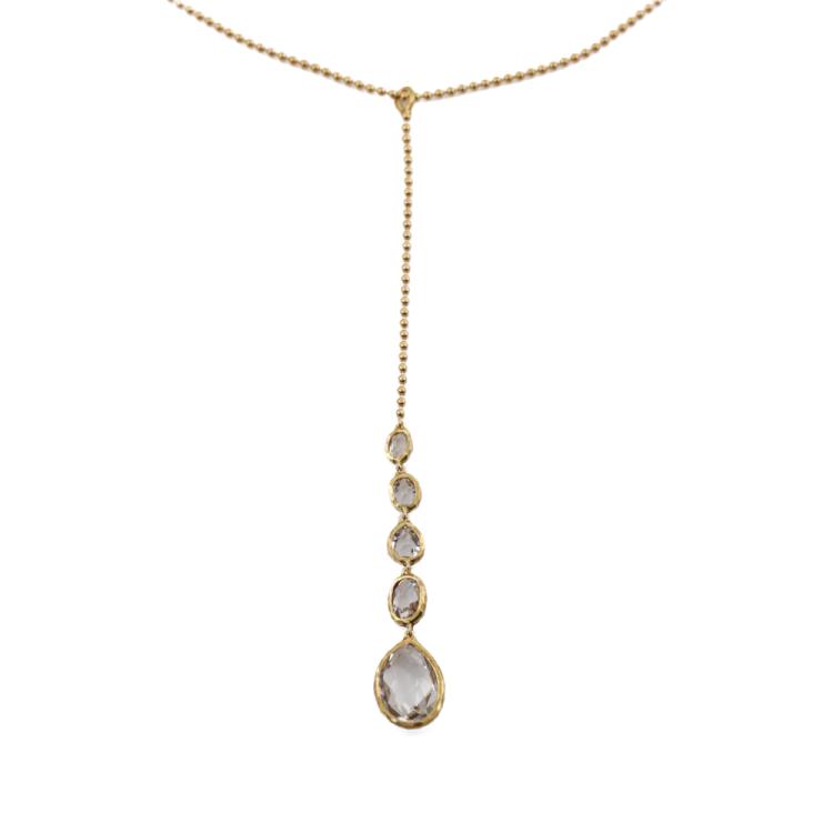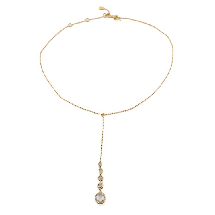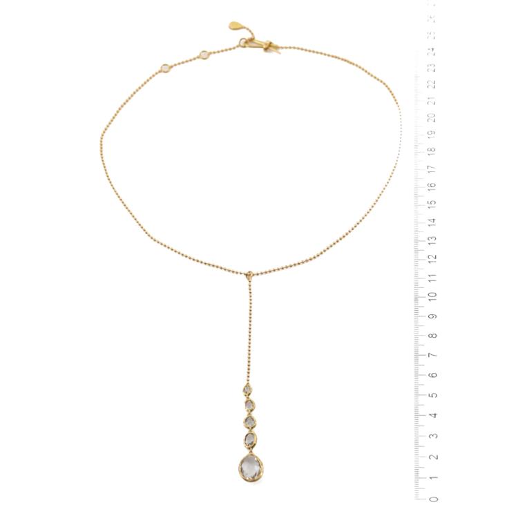 Gucci drop pendant with drop & oval shape Natural Quartz of size: 13 x 9.5mm, 6.8 x 5.2mm, 5.6 x 5mm, 4.6 x 4.1mm & 4.3 x 3.5mm. 18ct yellow gold with 42cm 18ct yellow gold chain. Pendant drop length: 10.5cm. Made in Italy. Weight: 8.8g. (Pre-owned)