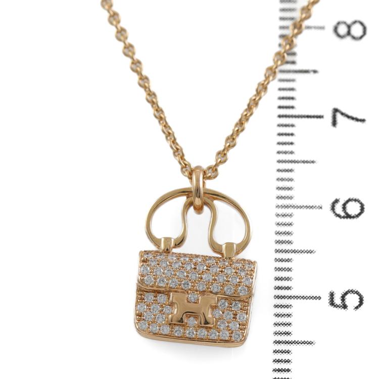 Hermes Constance Amulette Pendant with 65 round Natural Diamonds totalling 0.29ct. Motif size: 12.7mm x 17.1mm x 4.5mm. 18ct rose gold with 40cm 18ct rose gold Hermes chain. Made in France. Weight: 10.0g. With Hermes box and Hermes Certificate dated 19/11/2001. (Pre-owned)