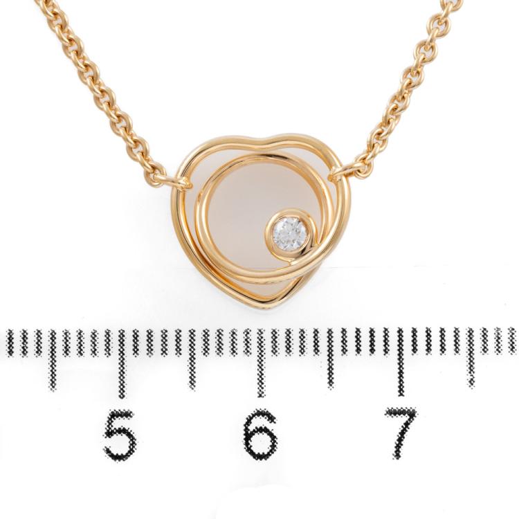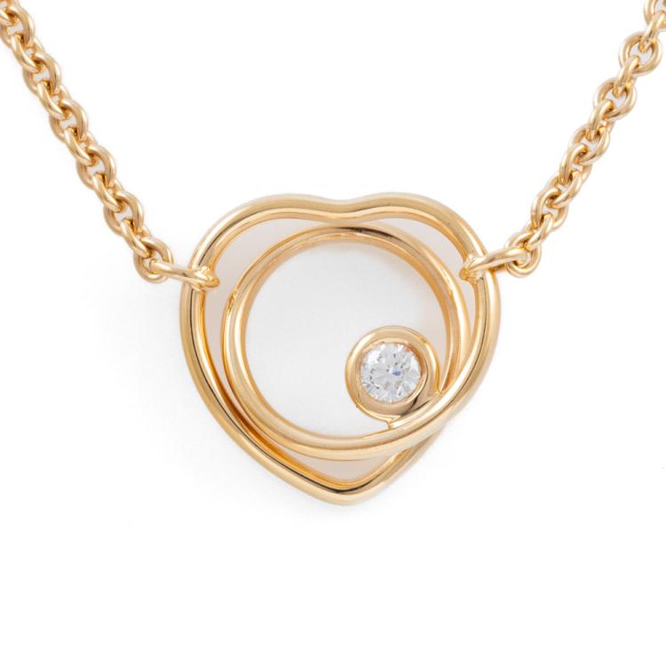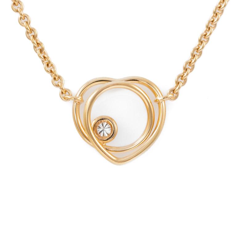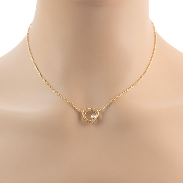 Hermes Vertige Coeur necklace with a round Natural Diamond of 0.05ct. 18ct rose gold with attached adjustable chain. Made in France. Length: Maximum 40cm. Motif size: 1.4 x 1.4cm Weight: 6.9g. With Hermes box (Pre-owned)