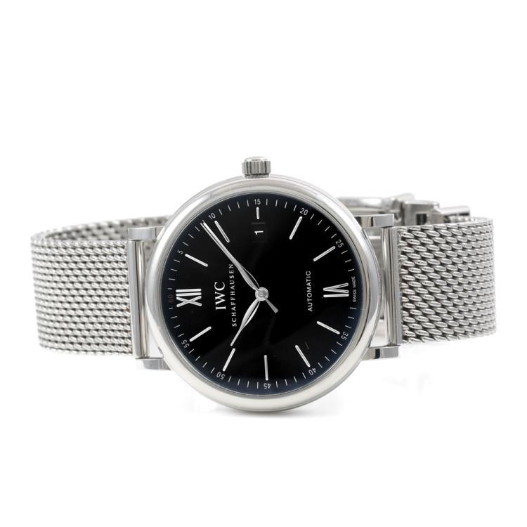 IWC Schaffhausen Portofino stainless steel automatic mens watch. Black dial, date, case diameter: 40mm, wrist size: 20cm, Swiss made. Ref #IW356506. With IWC Schaffhausen stainless steel bracelet and clasp. With Certificate of Authenticity. 3 month FSA warranty. (Pre-owned)