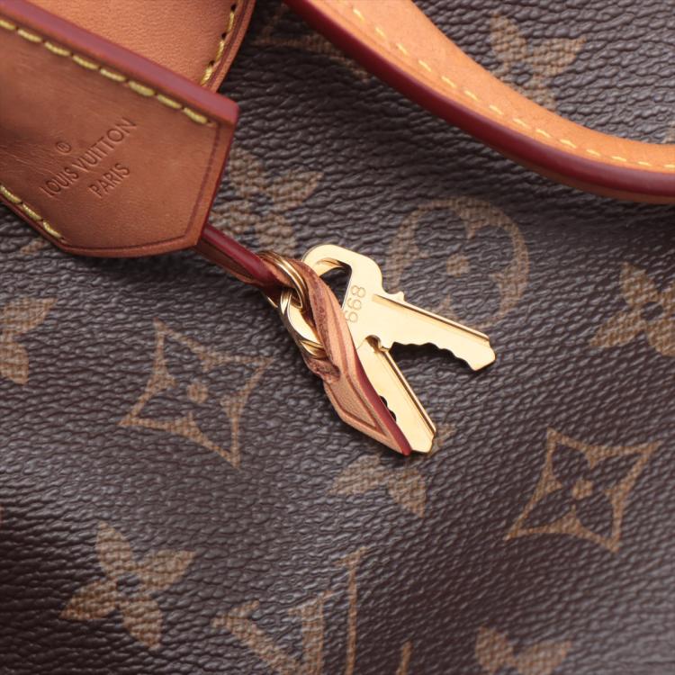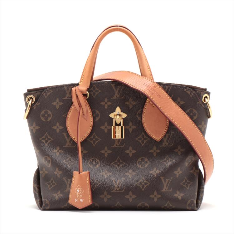 Louis Vuitton flower zipped tote PM in Monogram coated canvas. Featuring two pockets at front and back, gold-tone hardware. The top zipper closure opens to a brown microfibre lining interior with 2 patch pockets. Approximate dimensions: 25.5cm(L) x 21cm(H) x 9.5cm(D), handle drop 8.5cm, strap drop 48cm. Accompanied by a LV dust bag and box, crochet (with engraved "N, W" initials), padlock and keys. With Entrupy Certificate of Authenticity. (Pre-owned)