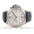 Panerai Luminor Due stainless steel automatic watch. Silver dial, date, case diameter: 38mm, strap length: 18cm, Swiss made. Ref #PAM00903. With Panerai blue leather strap and buckle. With Certificate of Authenticity. 3 month FSA warranty (Pre-owned)