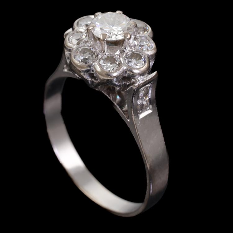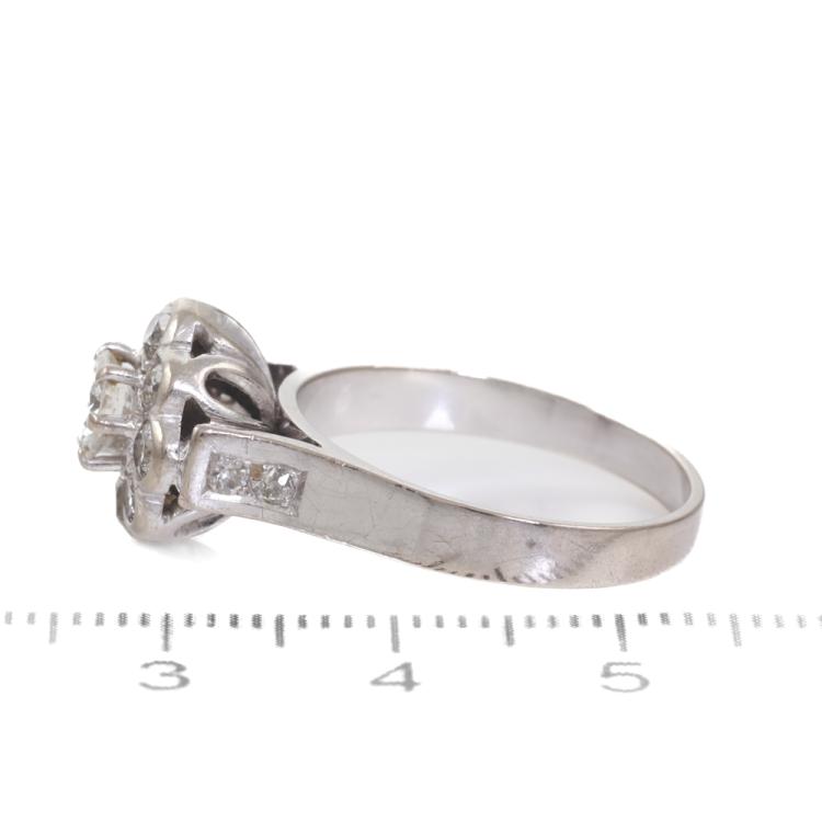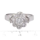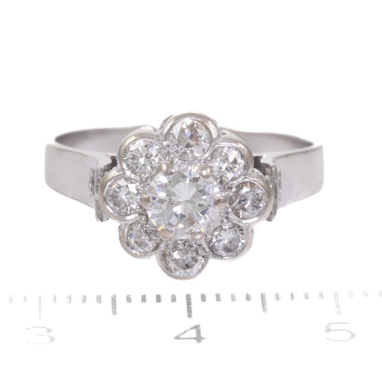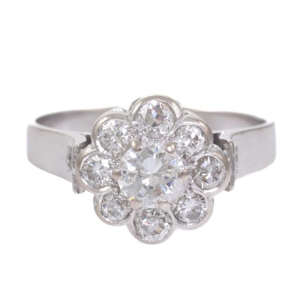Diamond Dress ring with centre round natural Diamond of approximately 0.50ct (Estimated grading: F-G VS) and surrounding 8 round natural Diamonds totalling approximately 0.80ct (Estimated grading: G SI). 18ct white gold. Ring size: P. Band width: 2.6mm. Weight: 6.0g. (Pre-Owed)