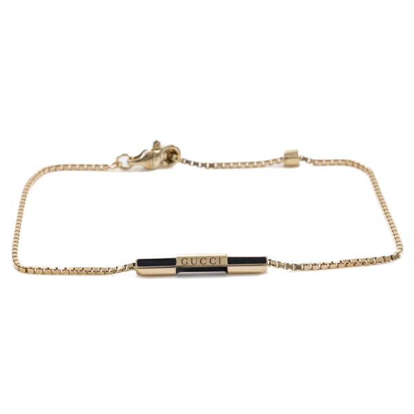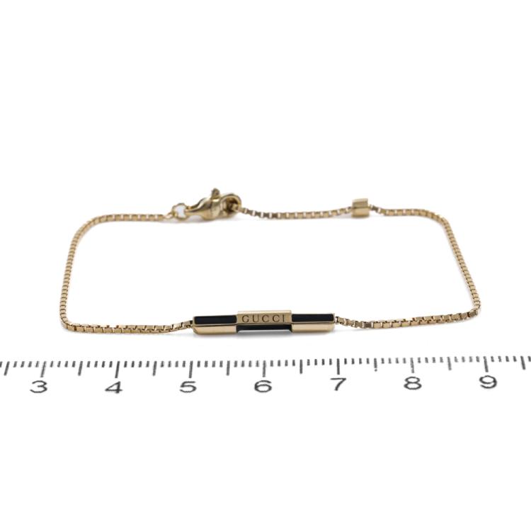 Gucci Link to Love bracelet with Gucci bar of size 2cm. 18ct yellow gold with black enamel. Adjustable bracelet Length: 16.0cm - 18.0cm. Made in Italy. Weight: 3.7g. With Gucci box (Pre-owned)