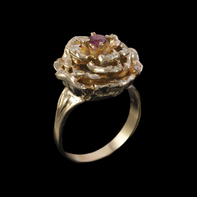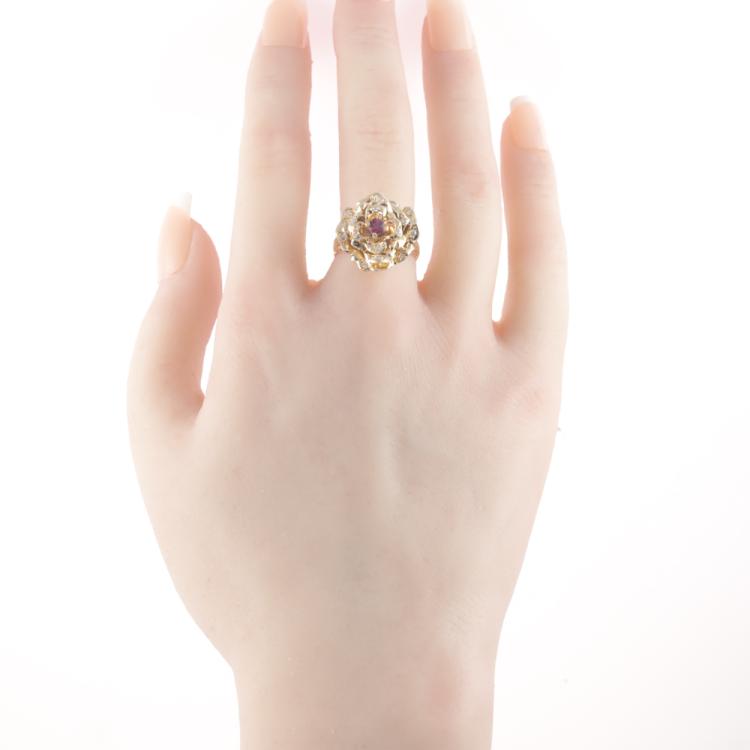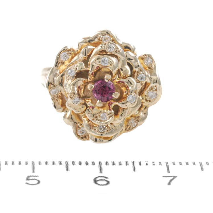 Ruby and Diamond Flower Ring